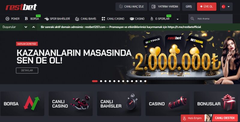 Sevgili kullanıcılar, Restbet giriş adresini duyurdu. Restbet girişle birlikte farklı oyun sağlayıcıları arasında hızla geçiş yapabilirsiniz.